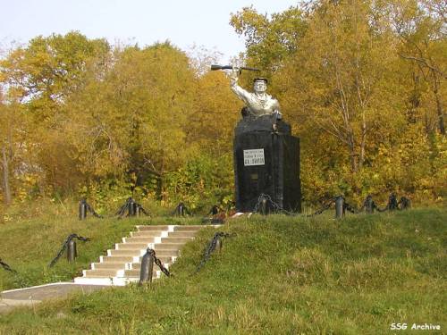 Памятник посвящен Герою Советского Союза, Вилкову П.И. погибшему в ходе боевых действий на о.Шумшу.